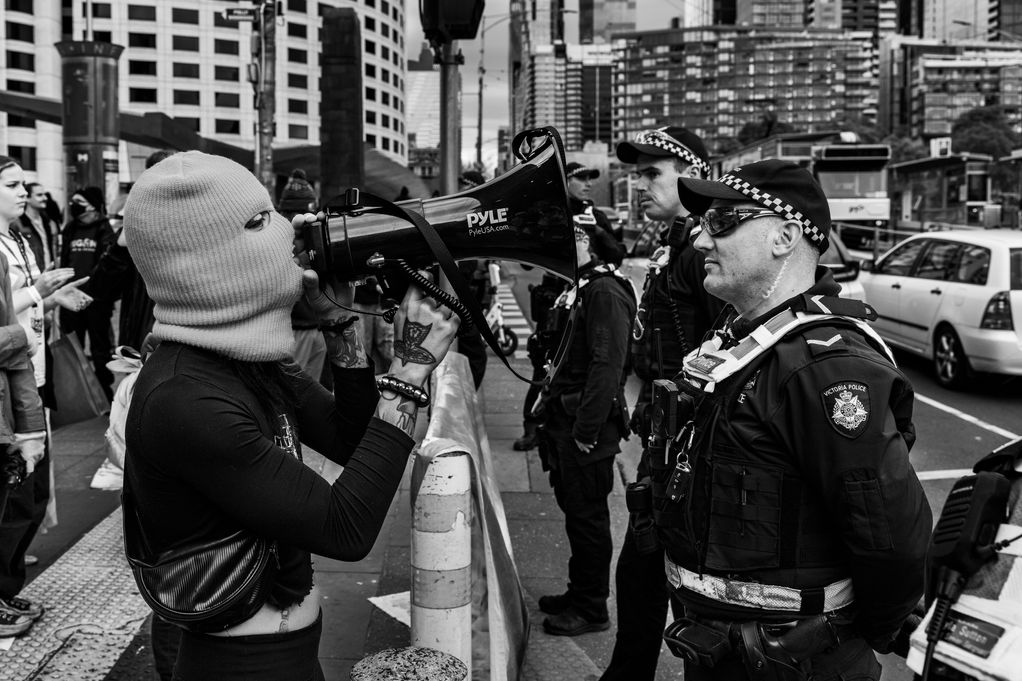 Anti-trans protesters clash heads with LGBTQ activists during the Melbourne Drag Show Exhibition.
